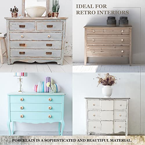 ⚙️ Le manopole vintage sono realizzate in ceramica, la base è in ottone antico finemente lucidato e la superficie è liscia, raffinata e pratica. I pomelli per mobili antichi hanno una dimensione di 26,5 mm, 14 mm di profondità e 23 mm di altezza. I pomelli cucina vintage sono facili da montare: prima di tutto scegli dover montarli, dunque pratica dei fori e passa la vite attraverso il retro della piastra, infine avvitali.