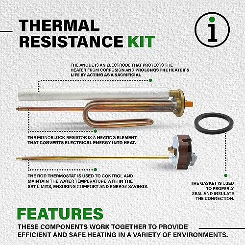 Kit di riparazione per serbatoi di acqua calda. Facile da montare e installare, per professionisti e utenti inesperti. Rimovibile e intercambiabile, consigliato per la sostituzione periodica. Compatibile con marchi e applicazioni standard. Kit di sostituzione universale per accessori scaldabagno elettrico. La nostra resistenza è compatibile con i principali marchi commerciali. Accessori certificati per cambiare le parti della tua caldaia o scaldabagno elettrico.