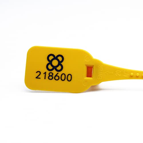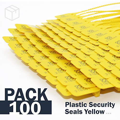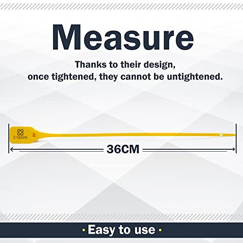 DOJA Barcelona | Sigilli di sicurezza in Plastica Gialla | PACK 100 | 36 cm di Lunghezza | Fascette con Sigillo di Garanzia Numerati per valigia, scatole, contenitori, camion, logistica