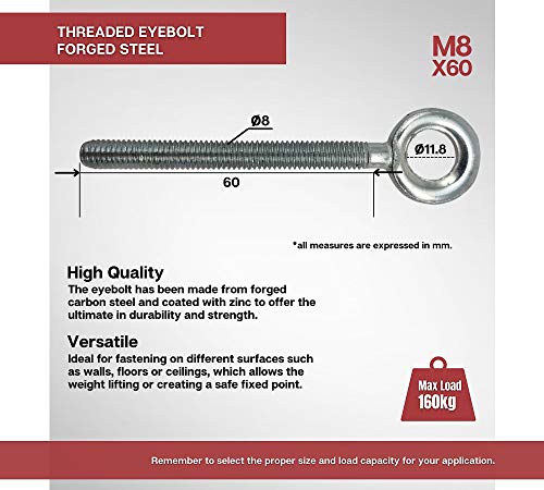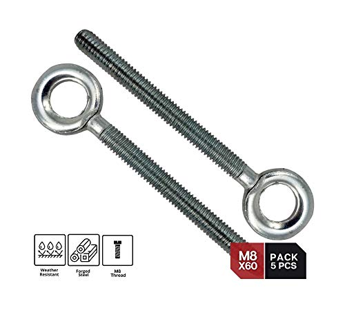 DOJA Industrial | Viti a Occhiello con Filettatura | M8 x 60 | 5 Pezzi | Viti ad Anello | Bullone Occhiello in Acciaio Zincato | Anello Chiodo per Soffitto e Parete | Per Sacco Boxe, Tende, Piante