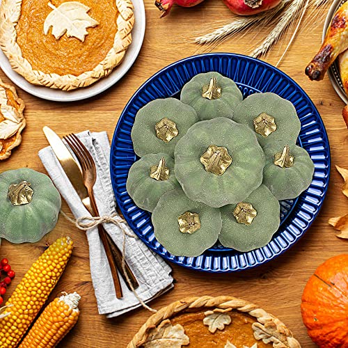 DOJoykey Zucche autunnali, 9 zucche artificiali verde salvia in schiuma di zucca autunnale per raccolto, tavolo autunnale, casa, giardino, Ringraziamento, Halloween, festa