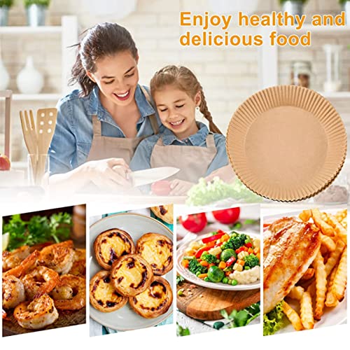 DOKEI 100 Pezzi Carta da Forno per Friggitrice ad Aria, Fodera in Carta Usa e Getta per Friggitrice ad Aria, Carta da Forno Impermeabile ad Alta Temperatura per Friggitrice ad Aria Forno e Microonde