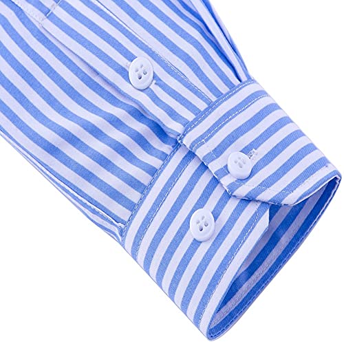 DOKKIA Camicia da uomo informale, da ufficio, con maniche, a righe verticali Manica lunga, azzurro e bianco. L