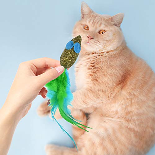 Dokpav 6PCS Catnip Giocattoli per Gatti, Piuma Giocattolo Interattivo Gatti, Topo Giocattoli per Gatto Piuma, Mordere e Masticare, Pulizia dei Denti del Gatto, Giocattoli per Gatti Giochi Interattivi