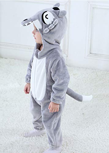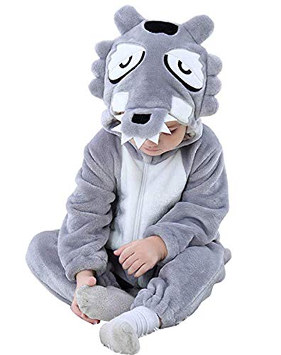 Doladola Pagliaccetto con Cappuccio per Animali da Cartone Animato Pigiama (Lupo, 2-2,5 anni)