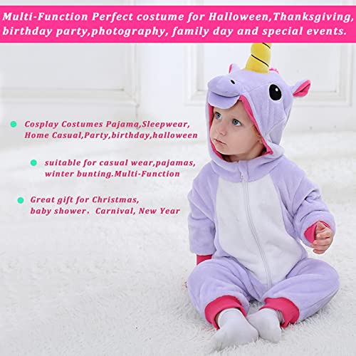 Doladola Pagliaccetto Onesies Unicorn per Animali in Flanella per Neonato (Unicorno Viola, 24-30 Mesi)