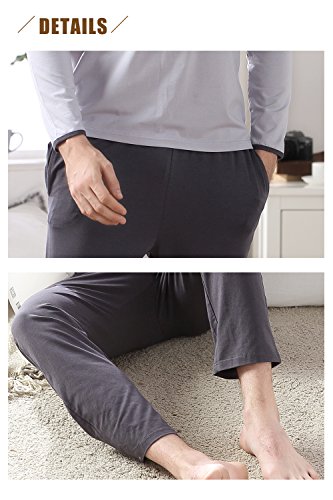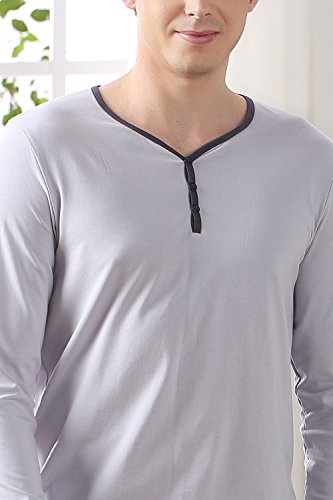 Dolamen Coppie Pigiama per Uomo Cotone, Soft & Smooth Uomo Lunga Inverno Primavera Pigiama da Notte Pantaloni Pigiama, Uomo Pigiama Collo V con Pocket Dormire e Tempo Libero (Large, Grigio)