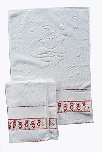 OM DOLCE CASA Strofinacci Canovacci Asciughini Asciuga Piatti Natalizi Variante Renne di Natale Set da 3 Pezzi 100% Cotone con Inserto in Tela Aida per Ricamo punto croce