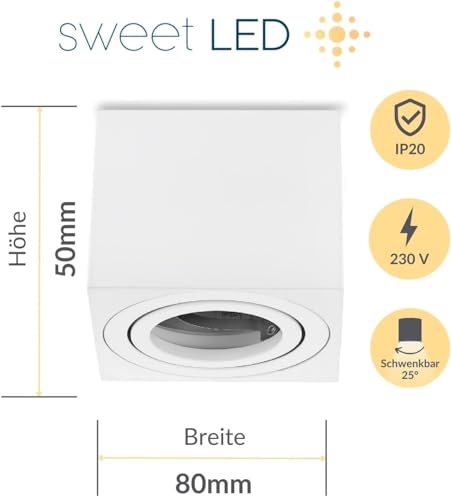 Dolce Led, Faretto da Incasso Piatto in Alluminio, 80x50mm, Orientabile, Tondo, Quadrato, Luce da Soffitto, Faretto da Parete, Spot da Incasso (Quadrato-Bianco)
