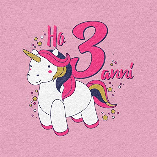 Maglie e magliette per bambine che festeggiano il loro terzo compleanno - Immagine che raffigura un dolcissimo unicorno con la scritta "Ho 3 anni".