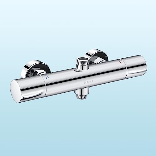 Dolinvo Termostato doccia cromato, con pulsante di sicurezza a 38 °C e 2 uscite, termostato rotondo per doccia, con protezione contro scottature e funzione di risparmio dell'acqua