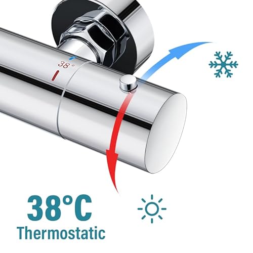 Materiali di alta qualità: il termostato doccia cromato è realizzato in ottone ad alta purezza, resistente alla pressione, inibisce la crescita batterica, non sporca le fonti d'acqua e ha una lunga durata. È inoltre antigraffio e testato per la durata nel test di nebbia salina. (doccetta e soffione non inclusi).
