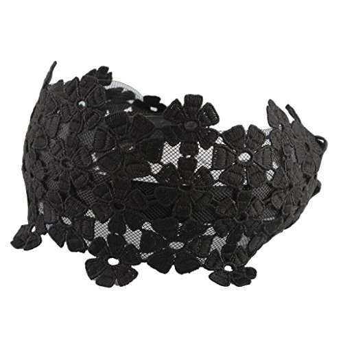Dolity Fascia Larga con Pizzo Gioielli Floreale per Capelli Accessorio Decorativo di Donne - Fiore Nero