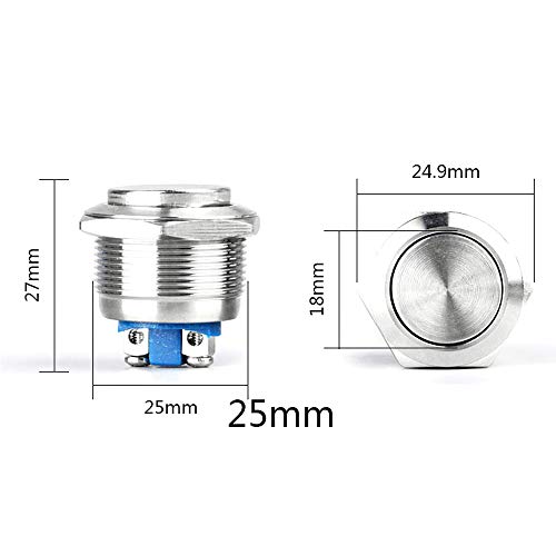 DollaTek 25mm Flat Reset Interruttore a pulsante 12V DC Angel Eye LED Interruttore Llight rotondo in acciaio inox impermeabile con piedino a vite - Nastro