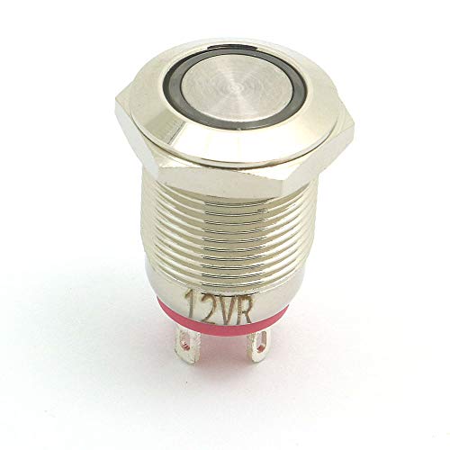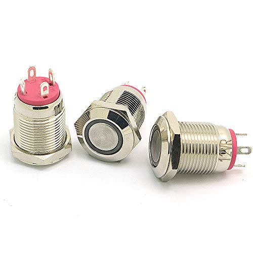 DollaTek 3Pcs 12mm Interruttore a pulsante piatto Reset Interruttore a bilanciere rotondo 12V DC Angel Eye LED impermeabile - Rosso