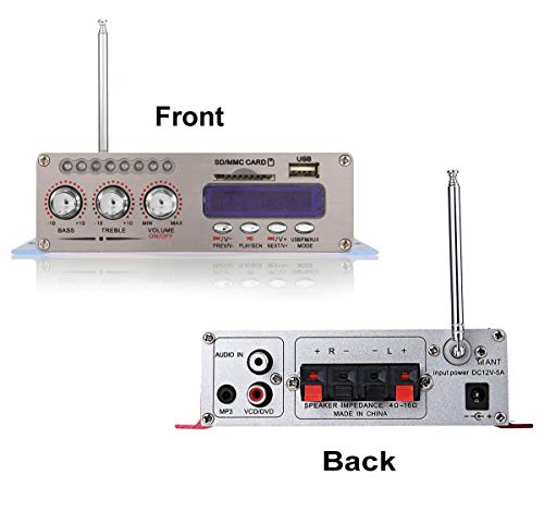 DollaTek 12V Amplificatore audio digitale stereo Hi-Fi DVD USB SD FM Stereo Audio MP3 Autoradio Altoparlante Bluetooth Amplificatore HiFi Mini 2 canali Display digitale Lettore di potenza
