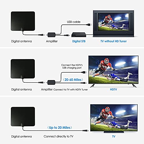 DollaTek Antenna TV digitale Plug and Play da interno, cavo da 3.7 metri per TV digitale Full HD per sistema ATSC/DVB-T / T2 DMB-T ISDB-T