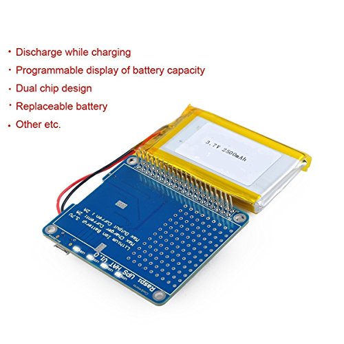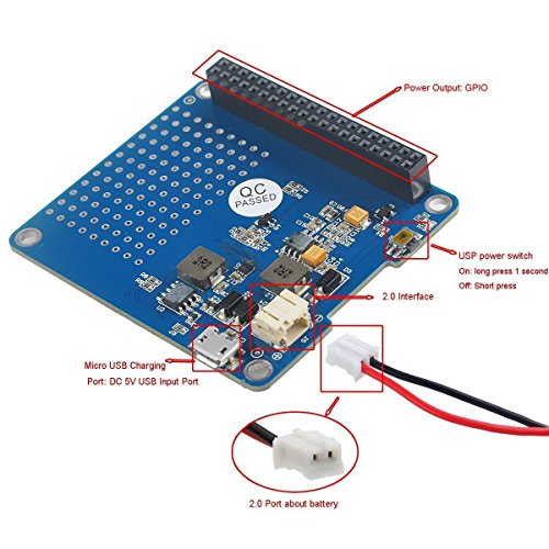 DollaTek CAPPELLO UPS con batteria per Raspberry Pi 3 Modello B / 2B / B + | Adattatore batteria | Fonte di alimentazione Pi 3