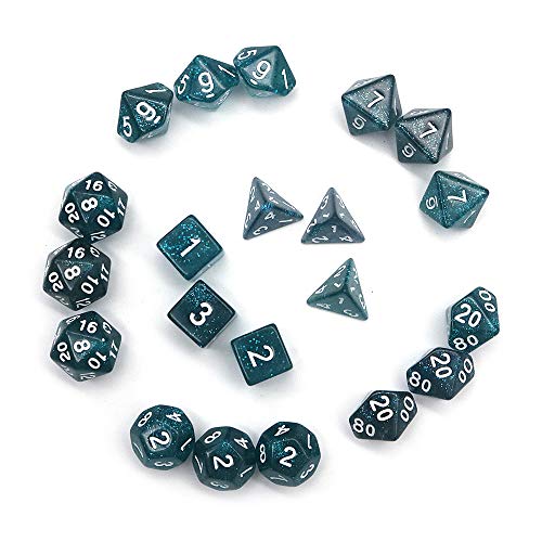 Design a colori con punto di scintillio: ogni dado ha un punto di scintillio e un colore, che lo ha reso più bello e colorato di altri dadi, 1 combinazione di colori brillanti per 3 set di dadi poliedrici a 7 dadi. Le parole chiare rendono i dadi facili da leggere.