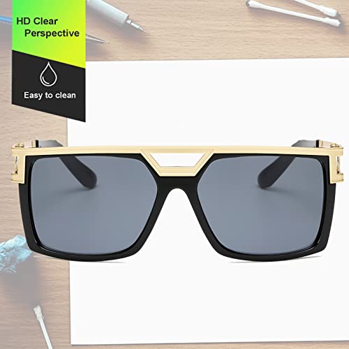 Dollger anni '80 anni '90 Rapper Retro Occhiali da sole Metallo Punk Rock - Occhiali da vista per uomo Donna Classico Occhiali da sole Occhiali Protezione UV 400 Lenti grigie e montatura nera oro