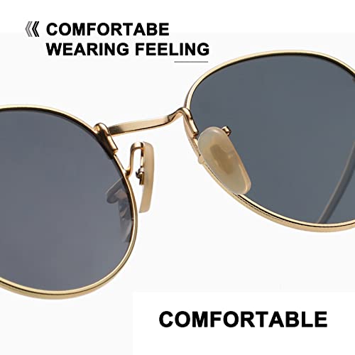 Dollger Occhiali da sole polarizzati rotondi piccoli per donna Uomo Occhiali da sole con montatura in metallo retrò vintage Lenti TAC Protezione UV400