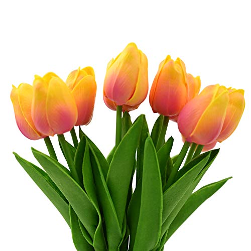 Tulipani artificiali in lattice di alta qualità, realizzati in poliuretano di alta qualità, il gambo è in plastica e contiene un filo sottile flessibile. Le foglie sono realistiche, realizzate in schiuma di polietilene, e la testa del finto tulipano è piena e colorata