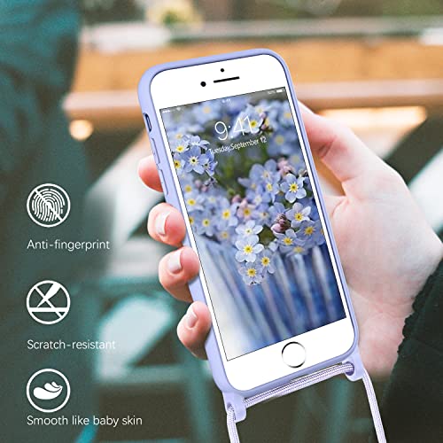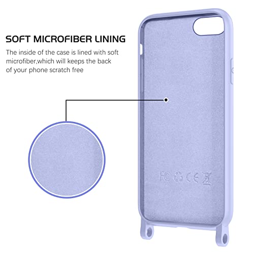DOMAVER Custodia per iPhone 8 con nastro, catena per cellulare iPhone SE 2020, iPhone 7, custodia in silicone, iPhone 8/7/SE 2020, con cordino, catena per iPhone 8/7/SE 2020, viola