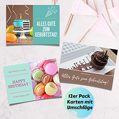 Set di biglietti per auguri di compleanno: nel nostro set di biglietti di compleanno con busta si trovano 12 biglietti di auguri + 12 buste. Sulla parte anteriore dei biglietti in carta kraft ci sono diversi bellissimi motivi e il retro è scrivibile, per auguri di compleanno speciali.