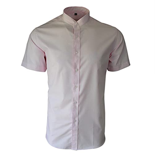 Dominic Stefano Men's Collarless Short Sleeves Smart Casual Formal Classic Summer Shirt Affordable & Comfortable Easy to Iron Best for Wedding & Evening Party Shirt (Pink, M)