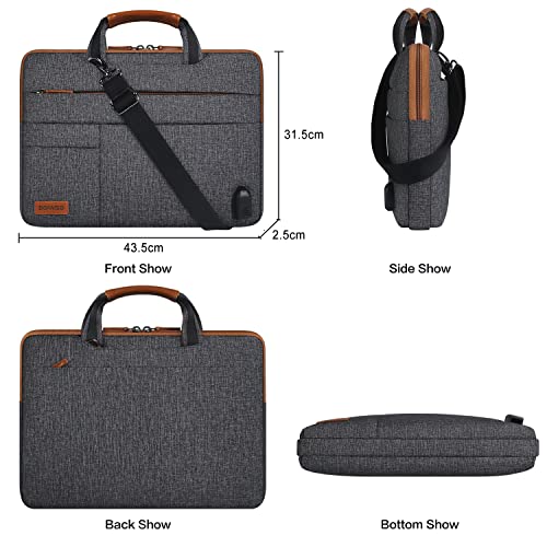 DOMISO Borsa A Tracolla Impermeabile in Tela con Porta di Ricarica USB per Laptop, Ultrabook, Notebook, Tablet, Lenovo, Hp, Dell, Apple, Asus, Acer, Toshiba (14 pollici, Grigio Scuro)