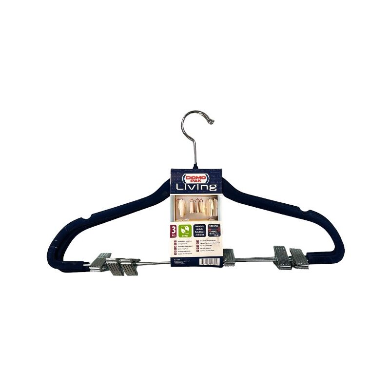 DOMOPAK - SET 3 APPENDABITO ANTISCIVOLO BLU Dotate di pinze per pantaloni Ricoperti di tessuto antiscivolo simile al velluto