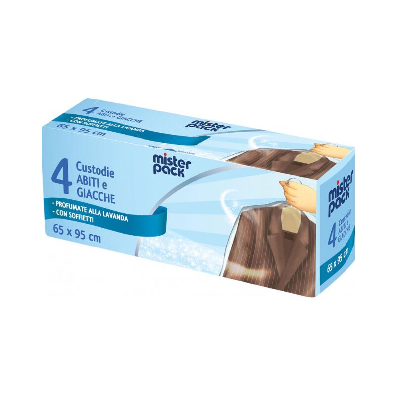 DOMOPAK - 4 CUSTODIE PER ABITI E GIACCHE 65x95 CM PRUMATE ALLA LAVANDA CON SOFFIETTI