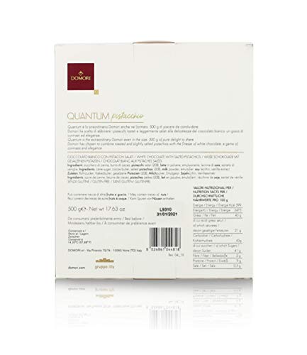 Domori Quantum Tavoletta di Cioccolato Bianco E Pistacchi Interi Tostati E Salati, 500 Grammi