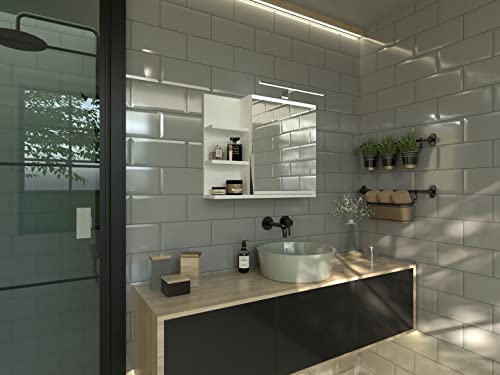 DOMTECH - Armadietto da bagno con specchio e ripiani, luce LED, misura L, bianco