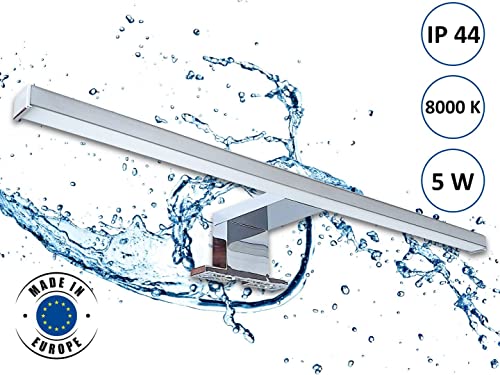 lampada a LED con collegamento diretto alla corrente (230 V 50 Hz), IP44 per l'uso in bagno, struttura in acciaio cromato.