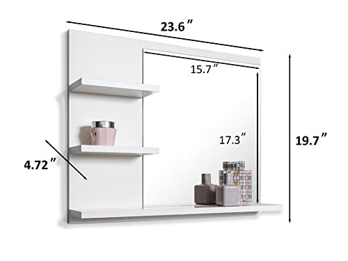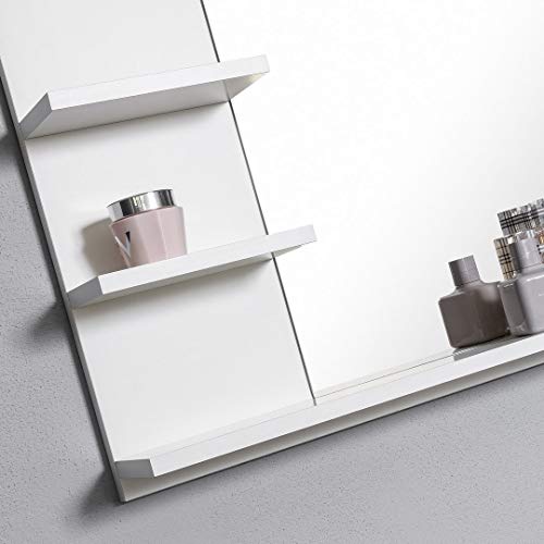 DOMTECH - Specchio da pare per bagno con mensole, colore bianco, specchio a sinistra
