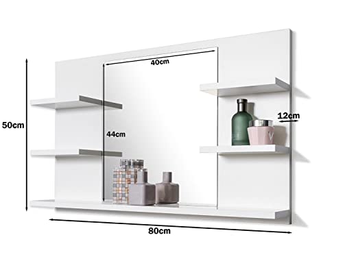 Specchio da bagno bianco con ripiani: pannello 50 x 80 x 12 cm (altezza x larghezza x profondità).