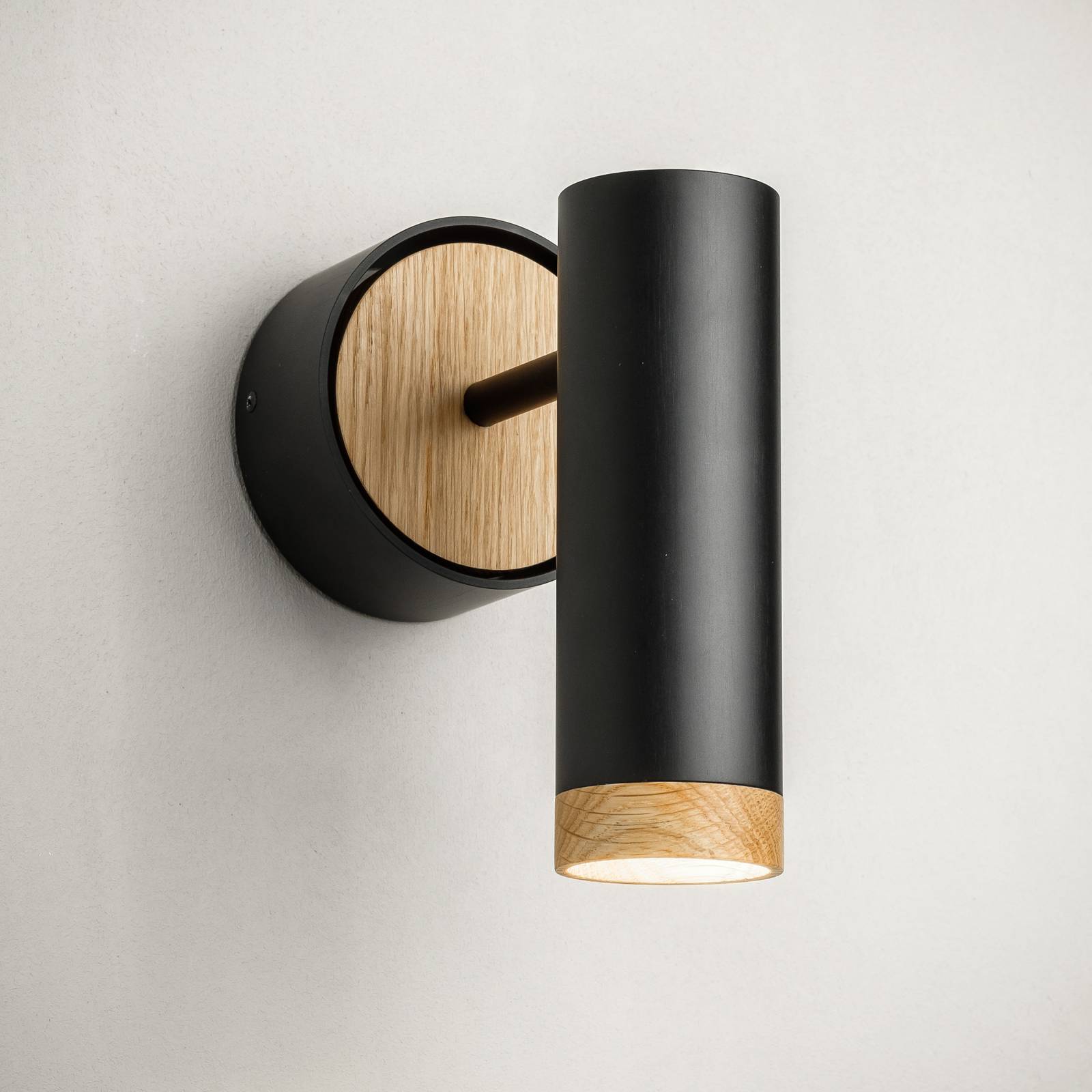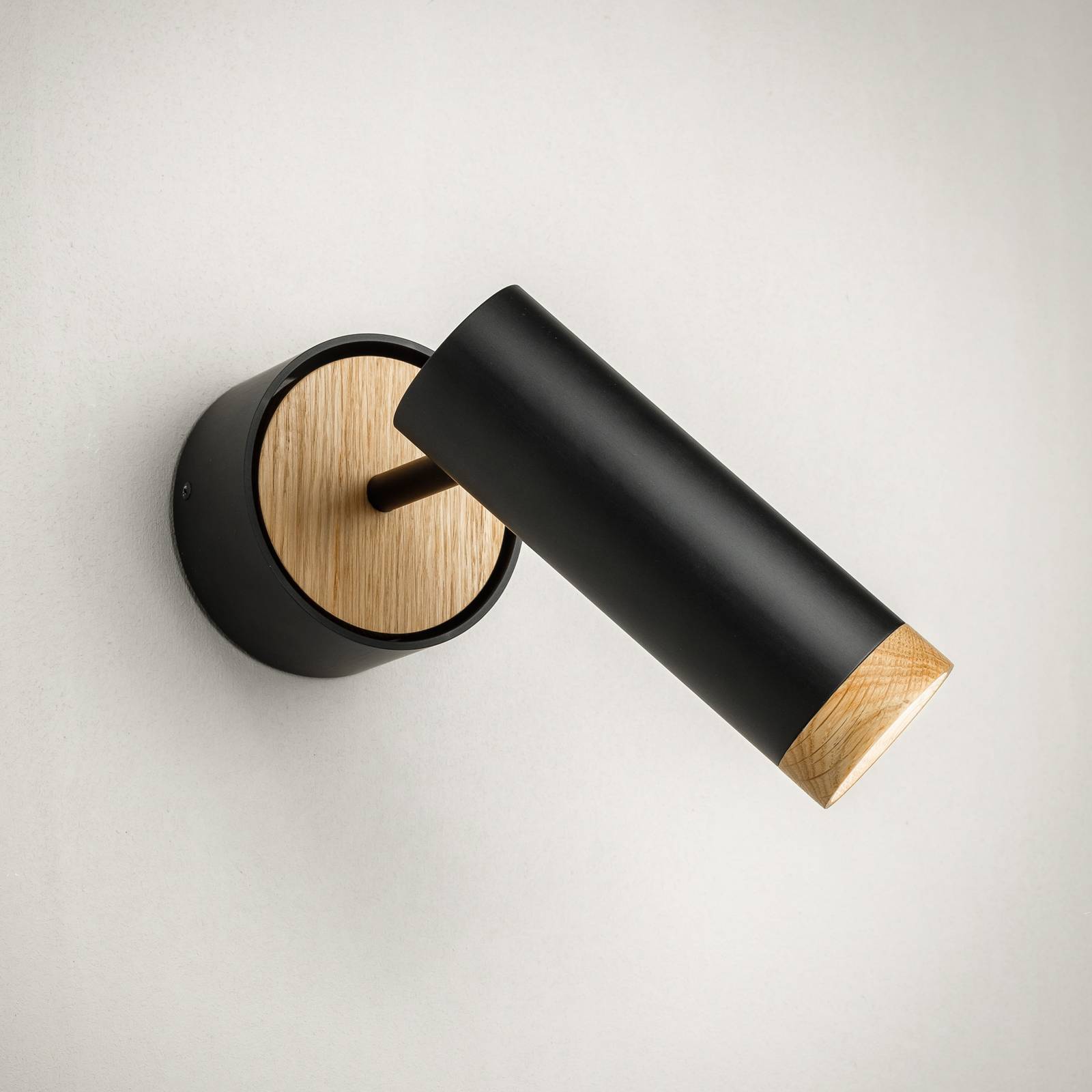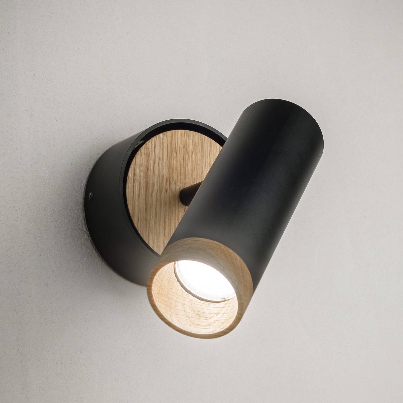 Lampada da parete a LED PHEB 5 - ruotabile e orientabile di 360°Lo spot da parete PHEB 3 è un'estensione di successo dell'apprezzato apparecchio a sospensione PHEB 5 ed è stato progettato per abbinarsi ad esso. L'emozionante combinazione di materiali, legno di quercia e metallo, unisce con disinvoltura modernità ed emozione. Il sottile cilindro dell'apparecchio può essere ruotato e orientato di 360°. Il cilindro sottile dell'apparecchio può essere ruotato e orientato di 360°, il che significa che la luce può essere sempre diretta in modo flessibile dove è necessario. Il riflettore LED nella testa dell'apparecchio, posizionato molto indietro, garantisce una distribuzione della luce particolarmente morbida e priva di abbagliamenti. Il delicato elemento in legno alla sua estremità è splendidamente illuminato e fornisce il calore necessario. Il legno si ritrova anche sul supporto a parete e completa l'immagine armoniosa dell'insieme. Come lampada da lettura accanto al letto, sopra una credenza, per illuminare oggetti particolari o come illuminazione accanto al divano, non ci sono praticamente limiti alla varietà di usi possibili. PHEB può essere utilizzata anche come faretto a soffitto.- Dimmerabile con dimmer a taglio di fase