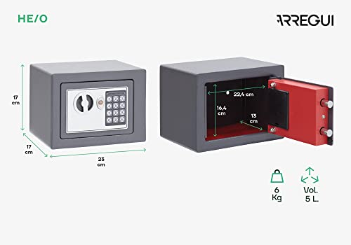 Domus ARREGUI D-HE/0 Cassaforte in Acciaio con Serratura Elettronica, Cassaforte a Mobile per Abitazioni, Tastiera con Codice Programmabile, con Chiave di Emergenza, 17 x 23 x 17 cm, 5 L