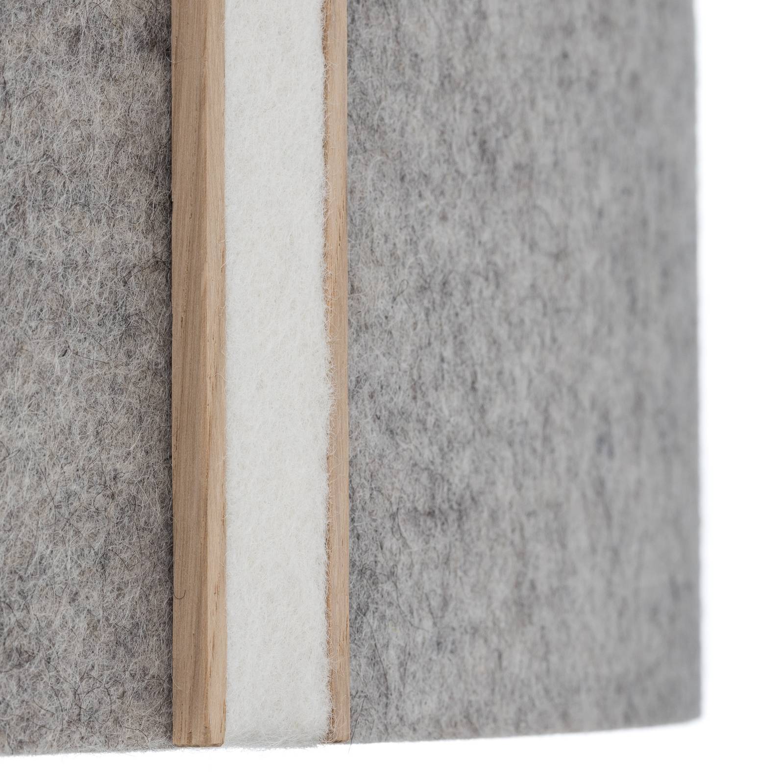 Accogliente plafoniera Lara in feltro di lana Il rivestimento ad anello della plafoniera Lara in feltro è realizzato in feltro di lana di alta qualità. I designer hanno ottenuto un'interessante finezza con lo spazio di un pollice tra l'apparecchio e il soffitto, che fa sembrare che il feltro Lara fluttui sotto il soffitto e dia l'impressione di un delicato bagliore di luce. Mentre il feltro di lana all'esterno della copertura è grigio, la colorazione interna è una tonalità più chiara di bianco lana, che garantisce una diffusione ottimale della luce. Inoltre, il diffusore volutamente profondo, dietro il quale si trova un potente modulo LED, assicura un'illuminazione priva di abbagliamento. Il rivestimento in feltro di lana è chiuso da uno speciale profilo in legno di quercia bianca. La forma semplice della plafoniera ne consente l'utilizzo non solo in progetti, ma anche in uffici e abitazioni private - Dimmerabile con dimmer di fase esterno leading edge o trailing edge Sostenibilità ecologica con prodotti fatti a mano dalla Germania - Persone e ambiente al centro della produzione di apparecchi di illuminazione Domus vanta un'esperienza pluriennale come produttore di apparecchi di illuminazione, essendo stata fondata nel 1966. Da allora, la filosofia di creare luce per l'abitare non è cambiata e la richiesta di una produzione di alta qualità e sostenibile si è perfezionata. Anche se la produzione è realizzata con l'ausilio di attrezzature tecniche d'eccellenza, Domus si considera ancora una manifattura in cui persone esperte e abili producono a mano prodotti di illuminazione di alta qualità per altre persone. Designer, falegnami specializzati, costruttori e progettisti illuminotecnici lavorano insieme per creare apparecchi di illuminazione senza tempo e tecnicamente durevoli che convincono i clienti di tutti i settori. L'impegno di Domus per la responsabilità ecologica si riflette, tra l'altro, nell'utilizzo di materie prime naturali prevalentemente rinnovabili e nell