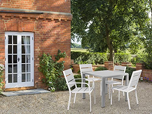 Il set Modigliani si distingue per linea pulita e design raffinato e sobrio oltre a dare la possibilità di abbinare le sedie con o senza braccioli. Le sedie Modigliani infatti si abbinano in maniera ottimale anche con il tavolo bianco da noi proposto con piano in vetro temperato, avendo un effetto estremamente raffinato e contemporaneo. Il design moderno coniugato alla funzionalità di una pratica e facile pulizia lo rende particolarmente indicato a zone ristoro, ampie terrazze e pergolati.