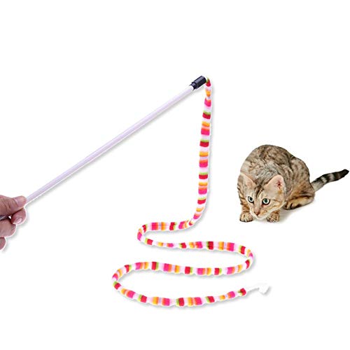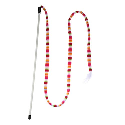 Domybest Canna da pesca per gatto, bastone di gatto con striscia di colore giocattolo interattivo per gatto