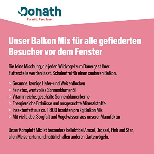 Donath Mix per balconi - miscela senza gusci per un balcone pulito - pregiato cibo per uccelli selvatici adatta tutto l'anno - dalla nostra manifattura nel sud della Germania