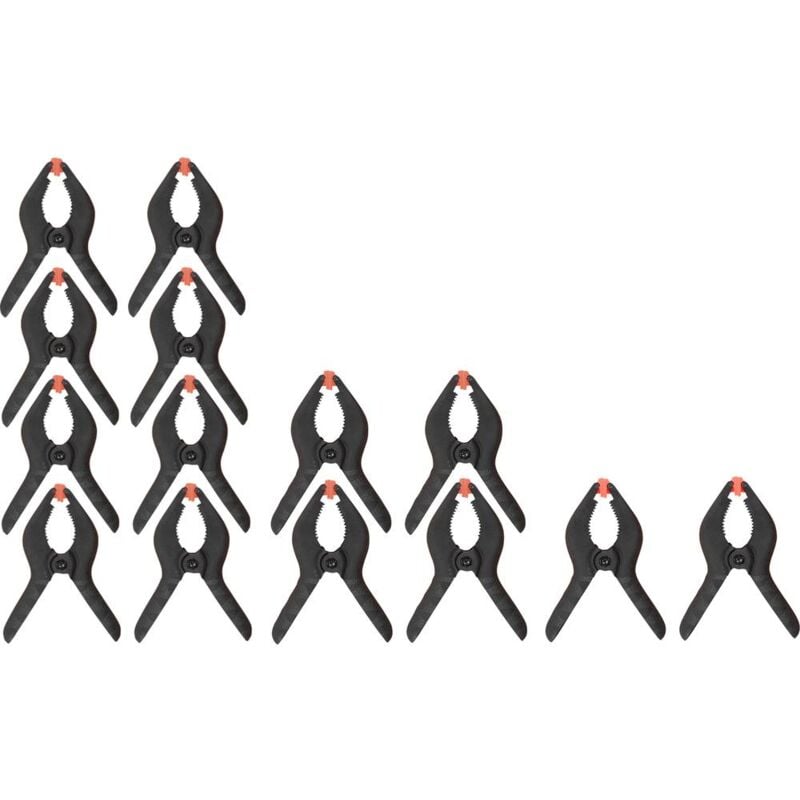 Dettagli tecnici Contenuto 14 pz. Tipo prodotto Kit strettoi a molla 812380: Scarico 25 mm, lunghezza 55 mm, campo di serraggio 20 mm 812328: Scarico 35 mm, lunghezza 85 mm, campo di serraggio 30 mm 1762594: Lunghezza 110 mm, campo di serraggio 45 mm. Caratteristiche Kit composto da: 812380: Kit di serraggio a 8 pezzi: Il pratico kit di serraggio con ganasce regolabili è particolarmente adatto per tutti i tipi di serraggio, fissaggio e incollaggio. 812328: Mini kit di serraggio a 4 pezzi: Il pratico dispositivo di bloccaggio nella costruzione di modelli con ganasce regolabili. 1762594: Kit di serraggio a 2 pezzi: Pratico dispositivo di bloccaggio per hobby, modellismo e lavori in legno di precisione. Le ganasce mobili si adattano automaticamente al pezzo. Impugnature ergonomiche, peso leggero, infrangibili. Testo tradotto automaticamente. Incluso nella consegna null Requisiti di sistema null