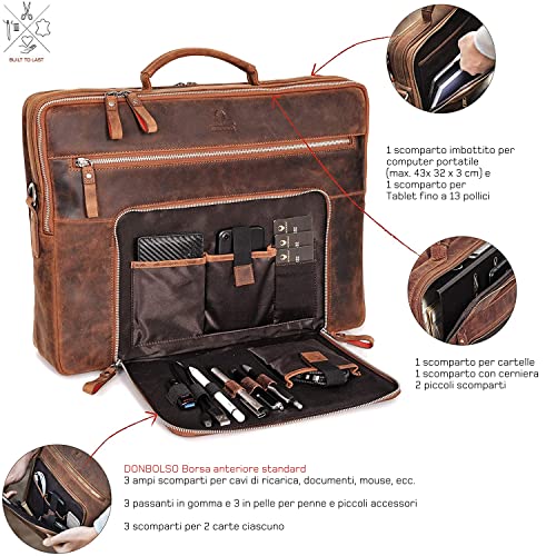 DONBOLSO Borsa A Tracolla In Pelle Per Laptop - Borsa Color Cuoio - Borsello Uomo Tracolla Pelle - Cartella Per Notebook In Due Misure - Borsa Per Donna E Uomo