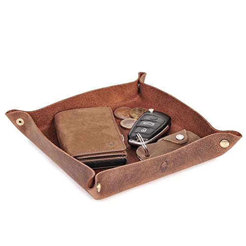 DONBOLSO Svuota Tasche Dublino | Vassoio Portachiavi in Pelle | Vassoio in Pelle per Portafoglio, Chiavi, Cellulare, Orologi e Monete | Contenitore per Monete | Vintage Marrone
