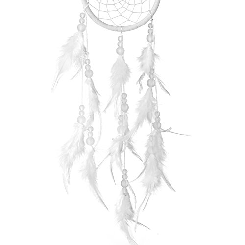DonDon Acchiappasogni Dreamcatcher con perle e vere piume Bianco - Ø 11 cm