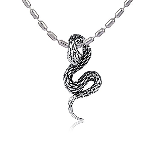 DonDon - Collana in acciaio inossidabile, da uomo, lunghezza 55 cm, con ciondolo a forma di serpente in acciaio inossidabile con zirconi bianchi, in sacchetto di velluto