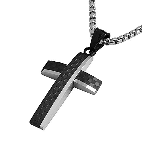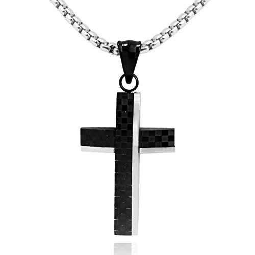 DonDon Collana Uomo con Ciondolo a Croce Lucido-Opaco a Scacchi in Acciaio Inox 52 cm Argento e Sacchetto in Velluto