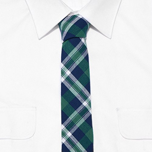 DonDon cravatta stretta a righe e a quadri da uomo 6 cm cotone - blu verde